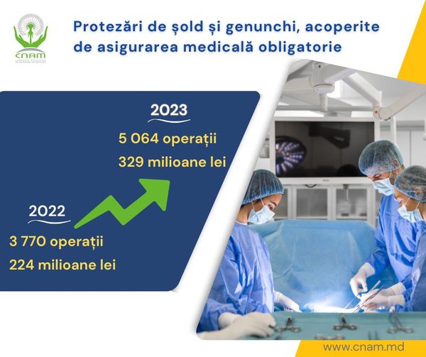 Cele mai multe operaţii de protezare au fost efectuate la genunchi – circa 3 300, iar la șold – în jur de 1 800.