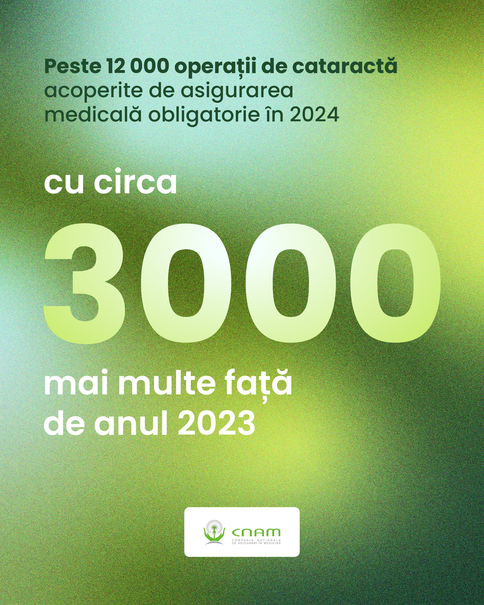 Peste 12.000 de persoane asigurate au beneficiat anul trecut de operații de cataractă acoperite de asigurarea obligatorie de asistență medicală. Numărul acestor intervenții a crescut cu aproximativ trei mii față de anul precedent.