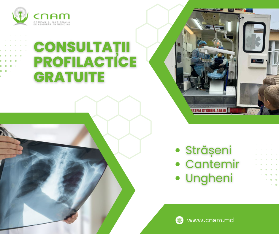 Echipele mobile de medici specialiști continuă să ofere populației consultații profilactice gratuite, acoperite din mijloacele financiare ale fondului măsurilor de profilaxie al Companiei Naționale de Asigurări în Medicină.